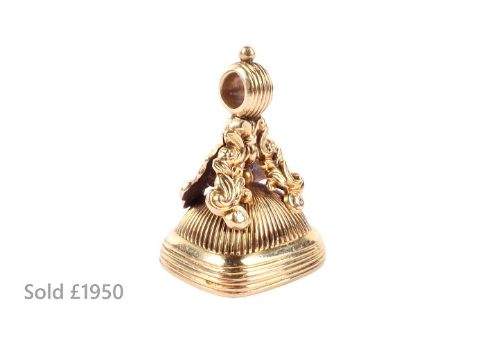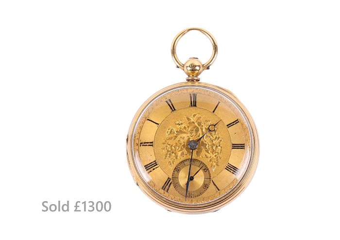 An elegant selection of watches also drew enthusiastic buyers. An 18ct gold pocket watch realised £1,300, an 18ct gold ladies’ watch £1,200, and a Breitling Chronometer wristwatch £950.